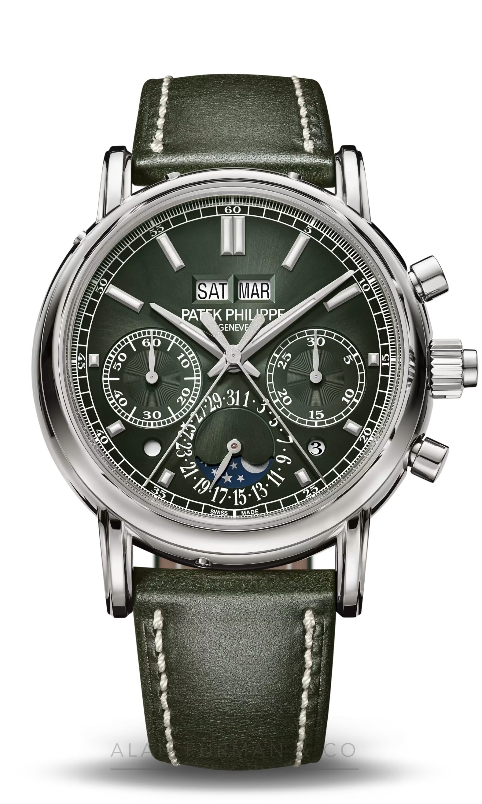 – Moon phases, small seconds and date by hand